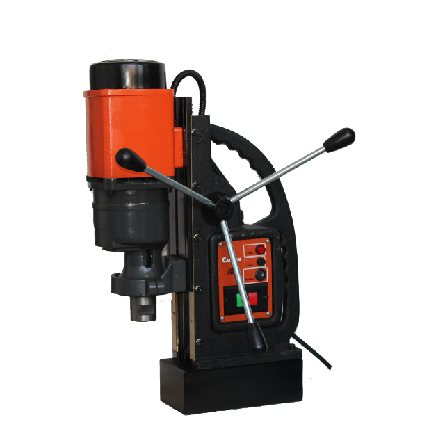 6、电机运作前,首先要校对好钻孔位置,然后再按下红色磁座开关,让磁座开始运作,再按下绿色启动按钮,电机开始运作。